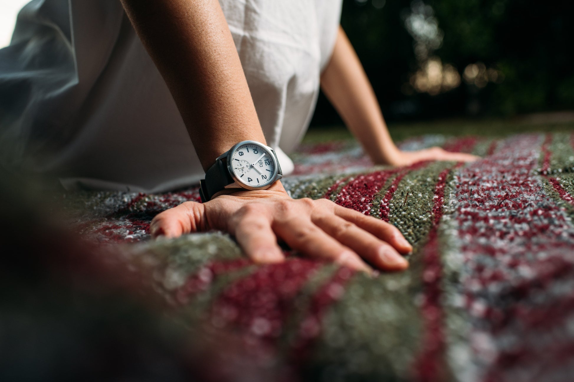- Soft genuine leather strap with signature buckle and “easy-release” spring pins for fast strap changes